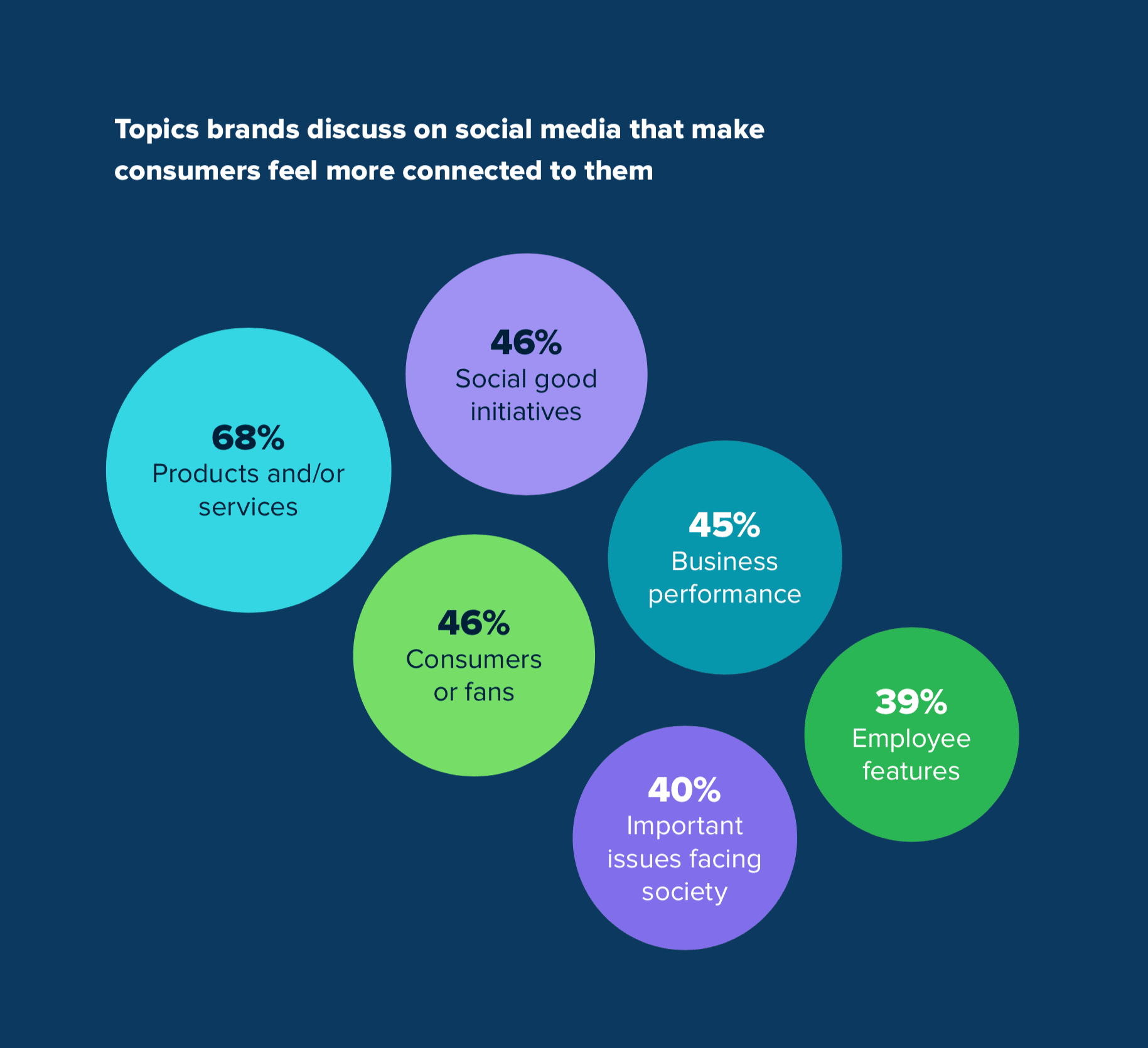 Connection grows when the consumer feels the brand listens to their needs and communicates directly with them (55%). This need to be heard by brands also effects the content consumers would most like to see with 46% of consumers preferring interactive social content.
